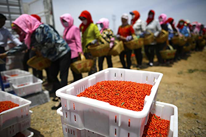 據正在田間摘枸杞的馬曉娟說,這幾天頭采,由于標準提高,每天采摘量在30斤左右,每斤采摘費可達6元左右,每天平均收入可達到180元左右。喜道禧山泉水原生態有機枸杞種植基地的總經理馬吉平表示,今天,田間采摘人數達到130人,預計到采摘旺季每天可達到700多人,一個采工一天最多可采摘40斤左右,單工日采量再多就會造成破果和采摘質量下降、枝葉脫落就會影響下一采期的掛果率,造成減產,寧可保質量不可圖數量。 據喜道禧公司基地副總經理介紹,今年,公司圍繞“喜道禧枸杞,好品質可以小貴一點”的品牌定位,就“管種好每一棵枸杞樹、加工好每一粒好枸杞”制定了具體細則和指標措施,為了做好今年喜道禧新枸杞的提前上市,喜道禧年初就從種植栽培、整形修剪、水 肥有機化、非藥生態防控病蟲害等各個環節,制定科學的量化技術措施和目標任務,這也是促成喜道禧枸杞提前采摘的主要秘密。今年,喜道禧頭茬枸杞的提前采摘,讓更多喜道禧顧客提前口福嘗鮮,為喜道禧公司贏得了市場先機,也為寧夏枸杞“優質優價”做出了榜樣。 |