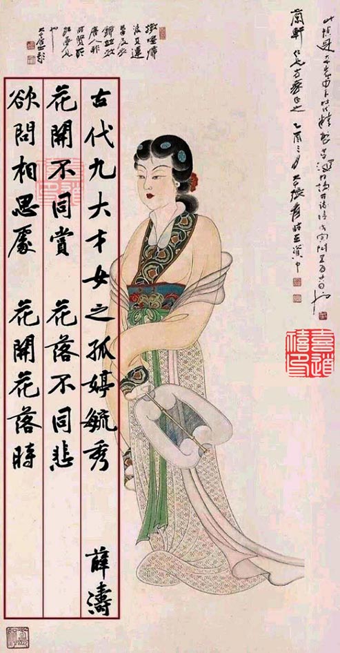 后人將薛濤與魚玄機(jī)、李冶、劉采春并稱唐代四大女詩人,與卓文君、花蕊夫人、黃娥并稱蜀中四大才女,流傳至今詩作有90余首,收于《錦江集》。