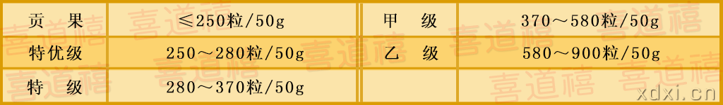 按重量劃分等級(jí),標(biāo)準(zhǔn)如下: