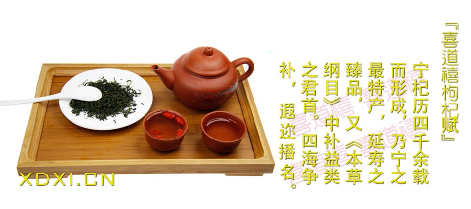勤乎寧企之喜道禧,業杞幾逾十多載。秉精硏制,棄簡趨深,植有機枸杞,豐收葯倦,聖品道禧。精乎工藝之改進,順乎民意之養生,名品終成,百傢爭羨,枸杞之求,遍及海山。採中寧有機基地之臻品,低溫而為鎖鮮,盛于禧之福袋,速封之,入冷庫,直達客,品鮮喜享。鑒而望之若紅瑪瑙,掬而嗅之有清香,入口甘怡醇濃,香溢齒頰,醇如乳酪之凝洇;泡水爭浮,嫩頰羞紅,汁露湯澈,喜道禧枸杞頤養美哉!