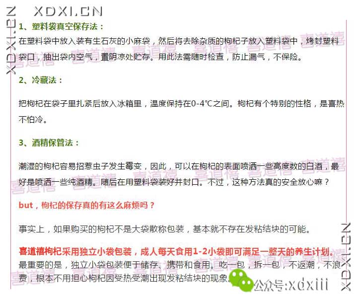以上是推薦給大家的一些方法,不管怎么樣。枸杞主要是怕潮濕和串味。潮濕、串味后發粘影響枸杞的品質和口感。同時避免在熱的地方保存。熱也會導致枸杞發粘。并且要保證枸杞不能接觸到空氣。這樣避免一些微生物導致枸杞生蟲。通過以上方法。可以盡量提高枸杞的保存時間。一般枸杞打開后在幾個月內食用完應該是不會有什么問題的,但串味、氧化導致品質、顏色變差是不掙的事實,必定空氣是無處不在、無孔不入的!