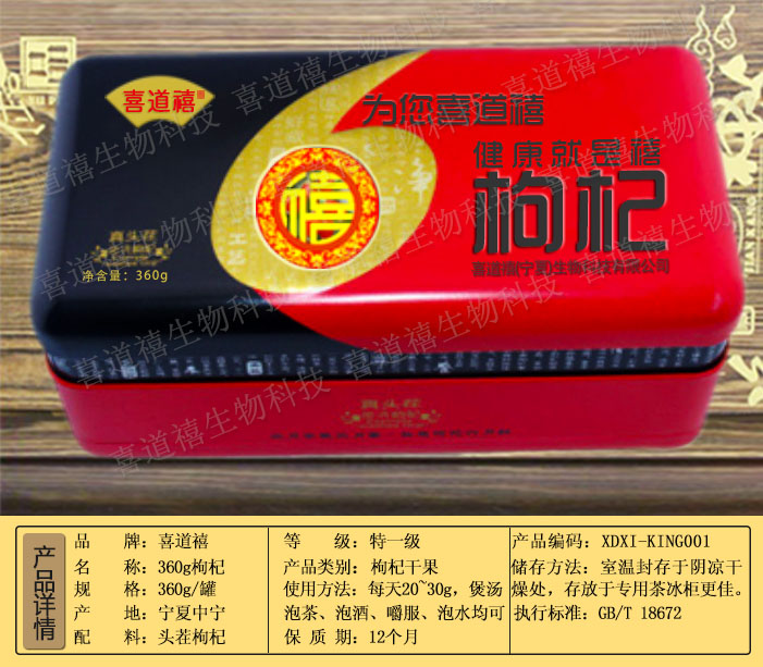 產(chǎn)品名稱:喜道禧360g頭茬禮盒枸杞